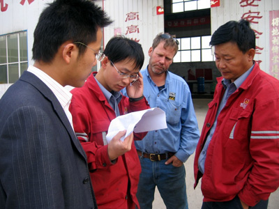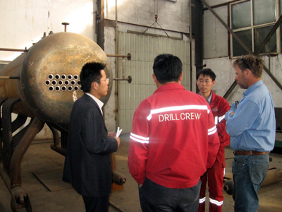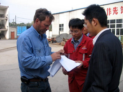 澳方生產(chǎn)總監(jiān)跟我公司技術(shù)經(jīng)理討論安裝工藝